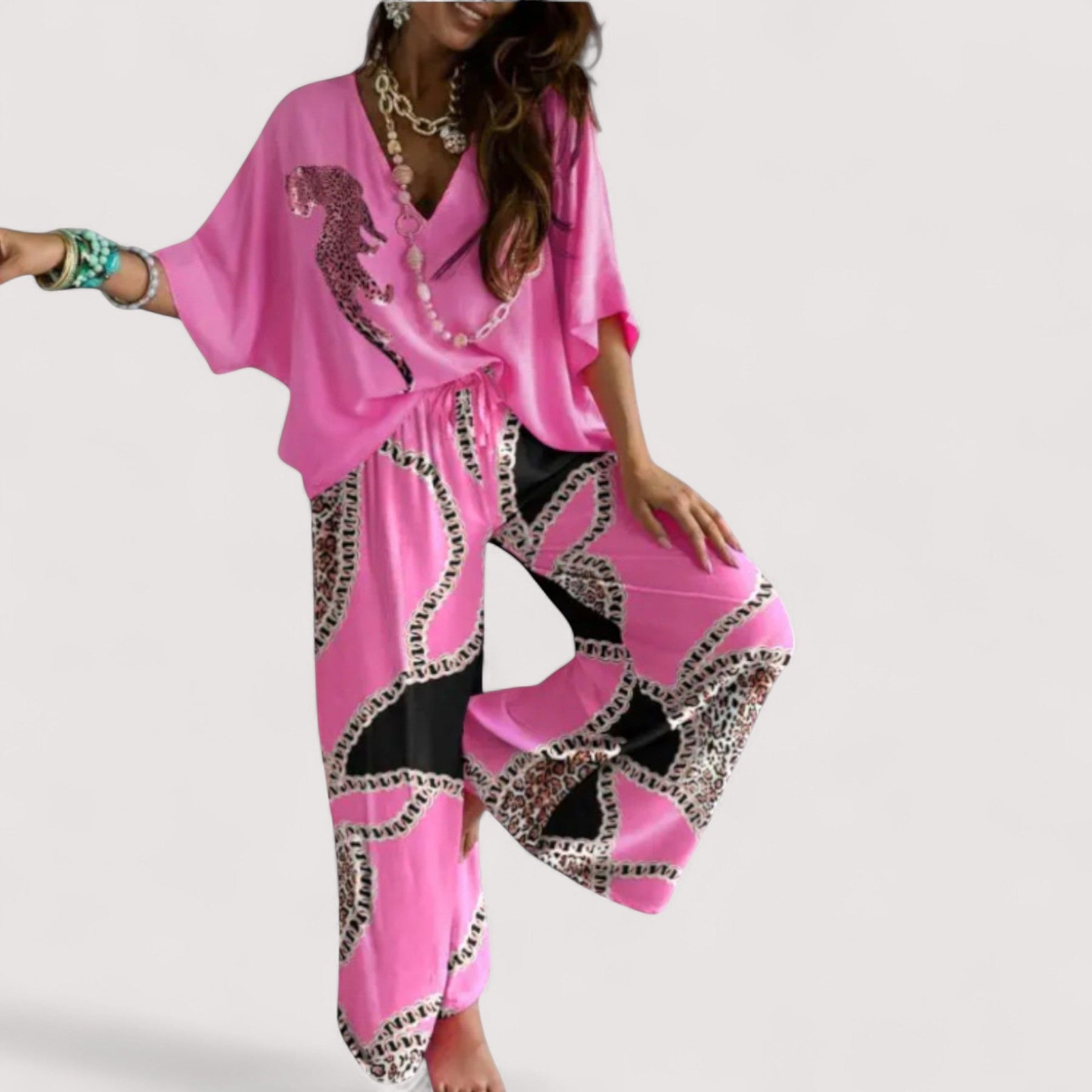 See lõdva kaheosalise komplekt on loodud naistele, kes hindavad julget stiili koos naiseliku nüansiga – ideaalne igaks juhuks, kus on vajalik mugavus ja modernne puudutus.