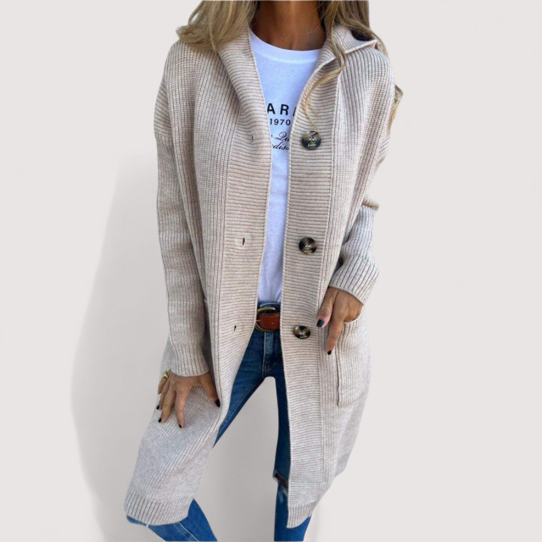 Elegantne pikk kardigan sügavate taskutega; valmistatud pehmest, hingavast kvaliteetsest materjalist, et pakkuda lõplikku mugavust ja stiili muutuvas temperatuuris – 100% kvaliteedi garantii, telli kiiresti, piiratud laoseis.